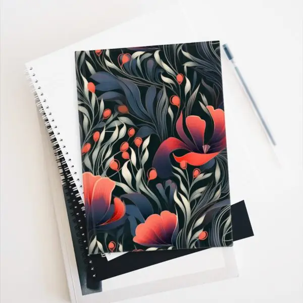 With its cover adorned with a delicate blend of purple and peach flowers, contrasted brilliantly with tasteful black and white accents, this journal invokes a sense of serenity and artistic flair, encouraging you to pen down your thoughts, dreams, and ideas amidst a bloom of inspiration.