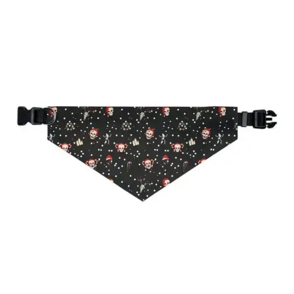 Crafted from high-quality polyester duck fabric, this bandana collar promises durability and comfort. It is designed to be sublimation printable on one side, featuring a mesmerizing array of nocturnal and Gothic-inspired Christmas patterns that include moonlit skulls, mystical black cats, eerie spiders, and jolly skeletons dressed in Santa’s garb.