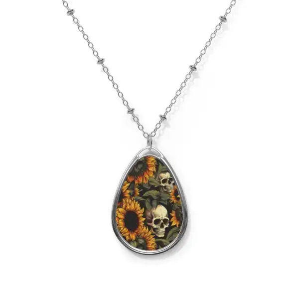 Skulls and Sunflowers Oval Necklace